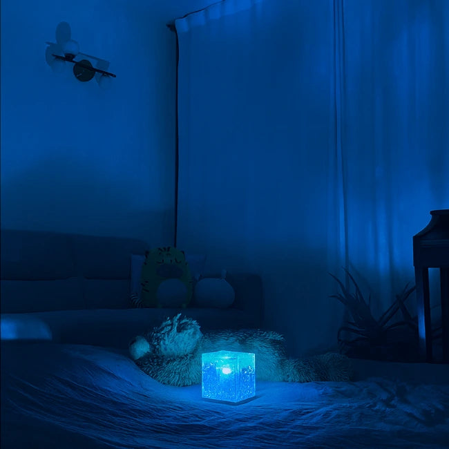 LumiCube™ no solo ilumina tu habitación, sino que la envuelve en una atmósfera única con colores vibrantes, movimientos de luz suaves y una belleza que inspira calma.